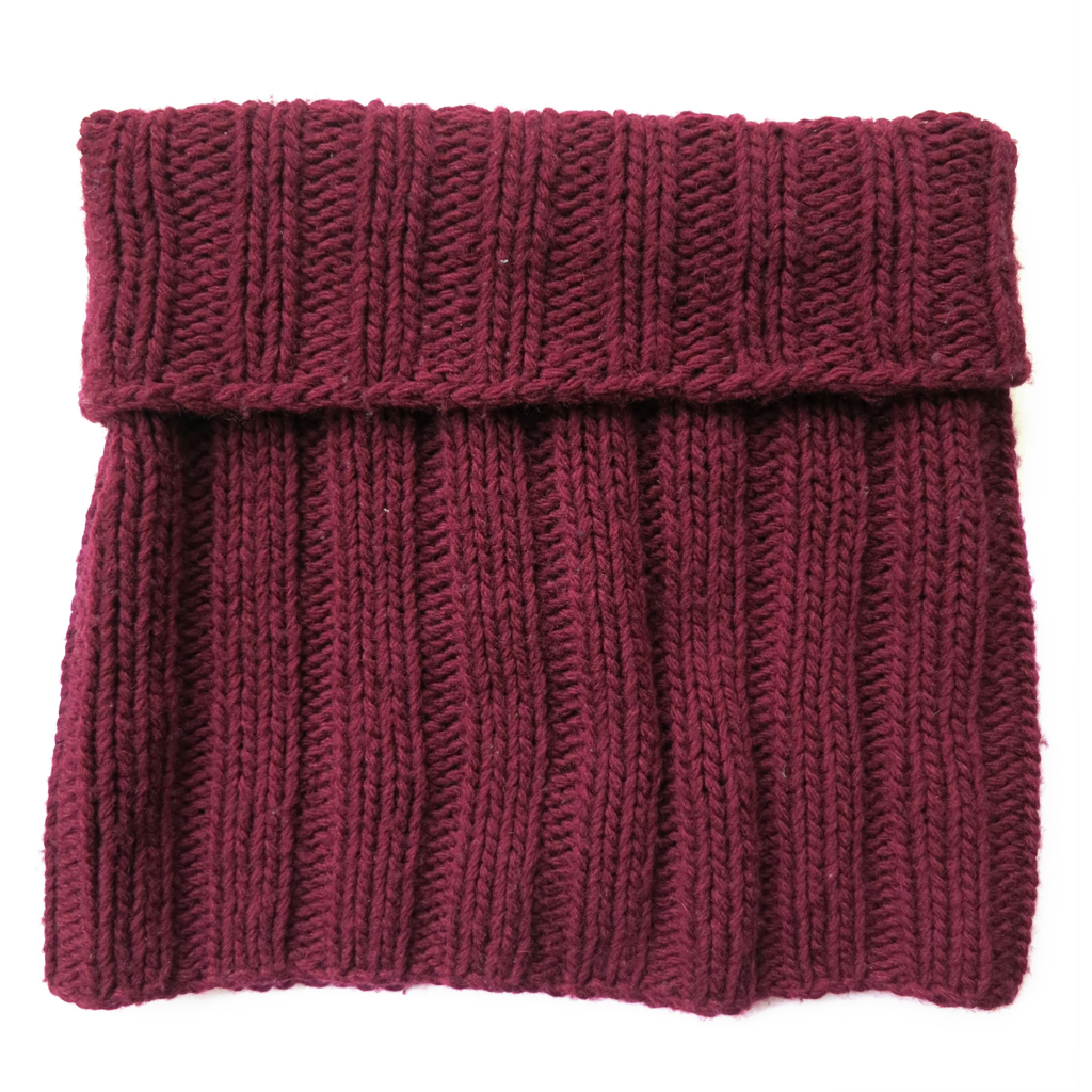 Ce snood se tricote en Benjamine (100% laine) avec des aiguilles 8.