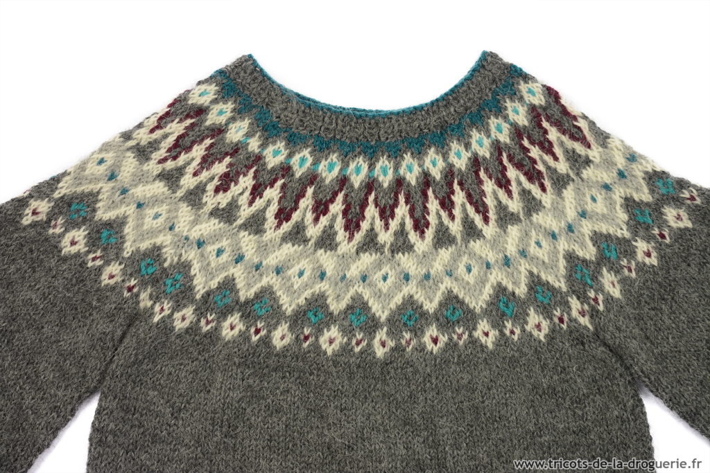 et les parties en jacquard sont tricotées avec l’Alpaga et la Surnaturelle
