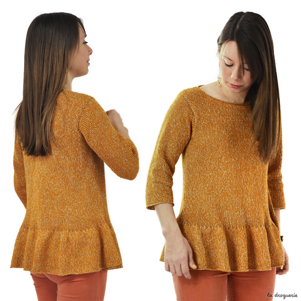 Le pull Estérel est tricoté en Lin (100% Lin) et en Bossa Nova