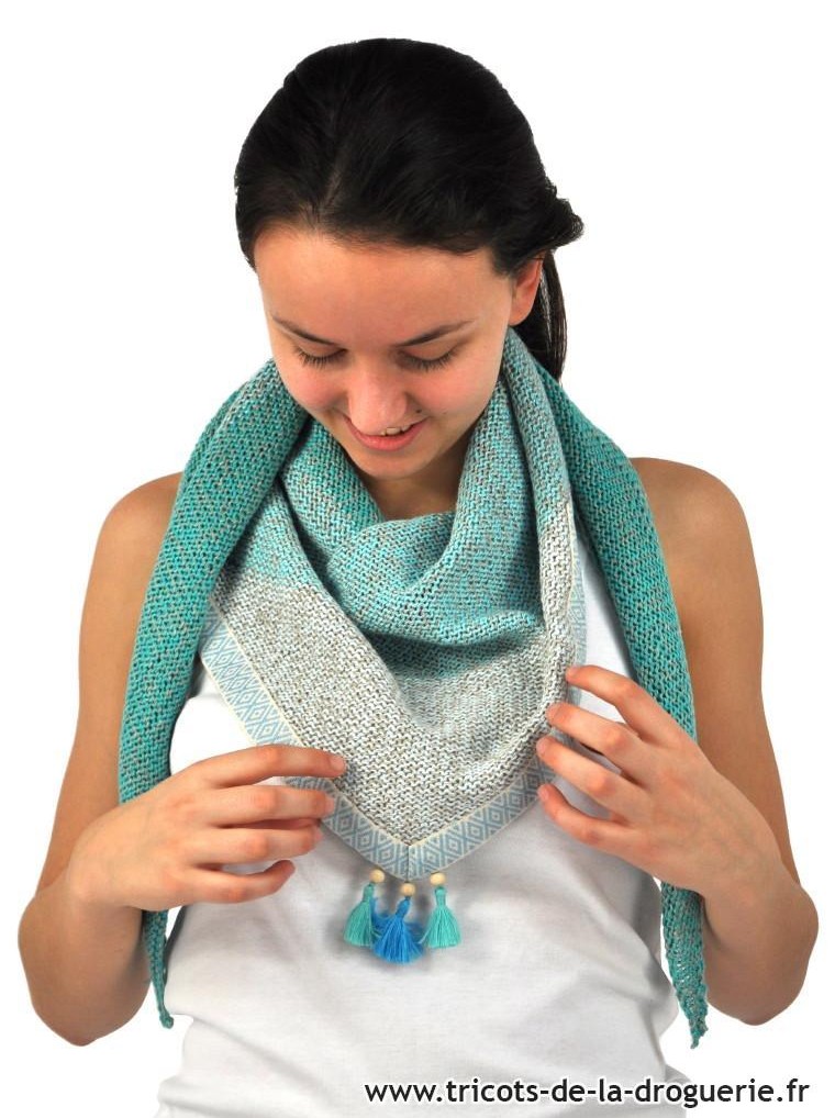 Il est tricoté avec 3 couleurs de « Bossa-Nova » (50% Lin et 50% Bambou).