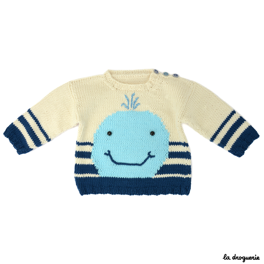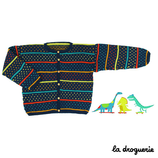 Ils sont tricotés avec des aiguilles 3.5 et 4 en Fleur de coton (100% coton bio) sur une base de rayures en dégradé. Seul le motif jacquard change. C’est un jacquard placé à pelotes séparées.