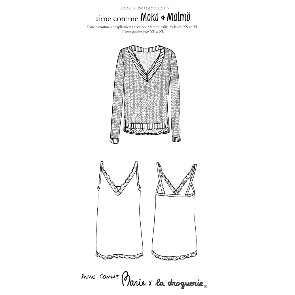 Le col V de mon pull Malmö est parfait pour voir la dentelle du débardeur Moka !