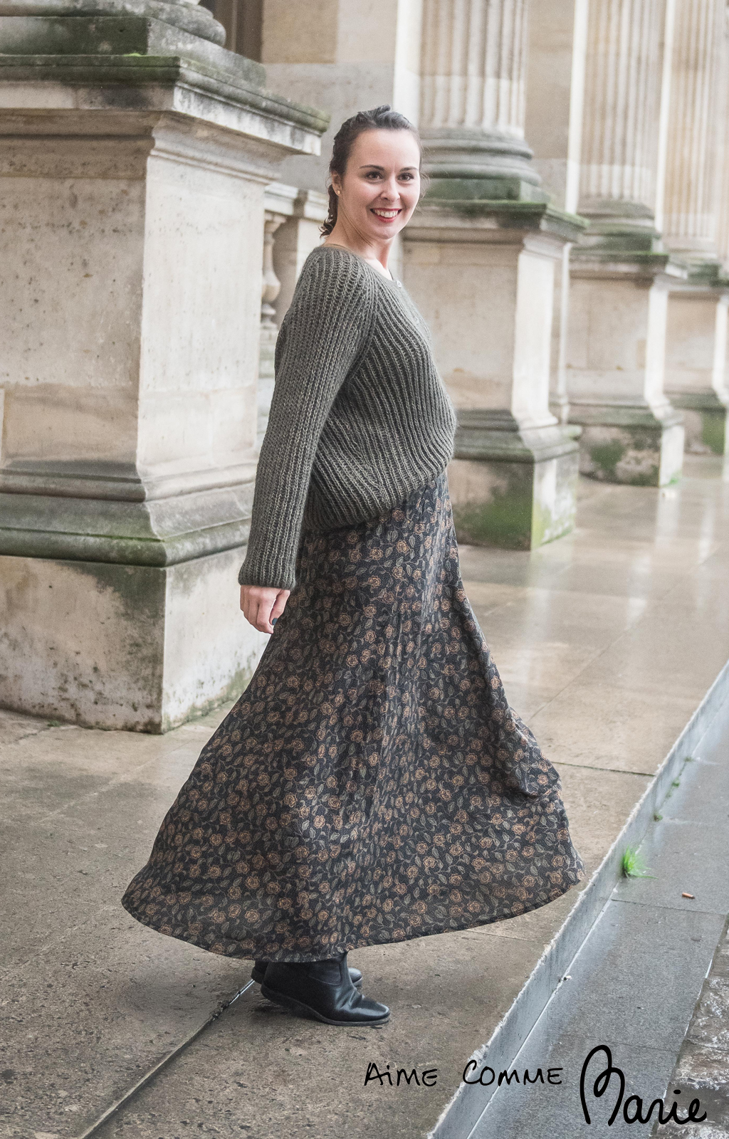 Je porte l’ensemble « Tuileries » avec ma robe Masala et le pull Machu Picchu !