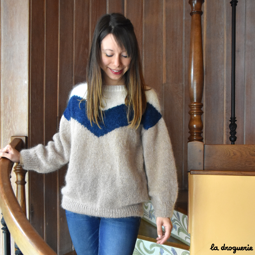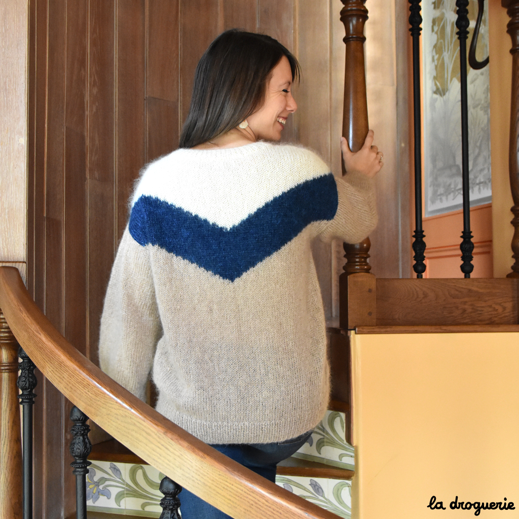 qui resserrent le bas du corps et les poignets. Raccord parfait sur l’épaule, entre le chevron du devant et le chevron du dos.