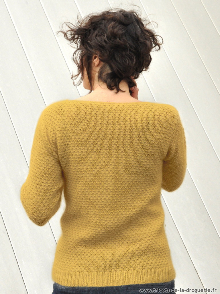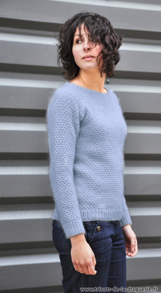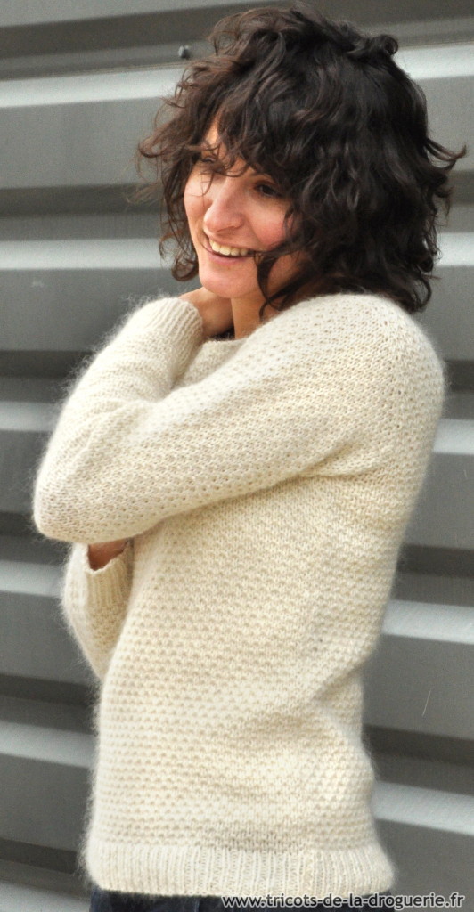 Le pull « Rue Mazarine » tricoté en « Duvet d’Anjou » relevé