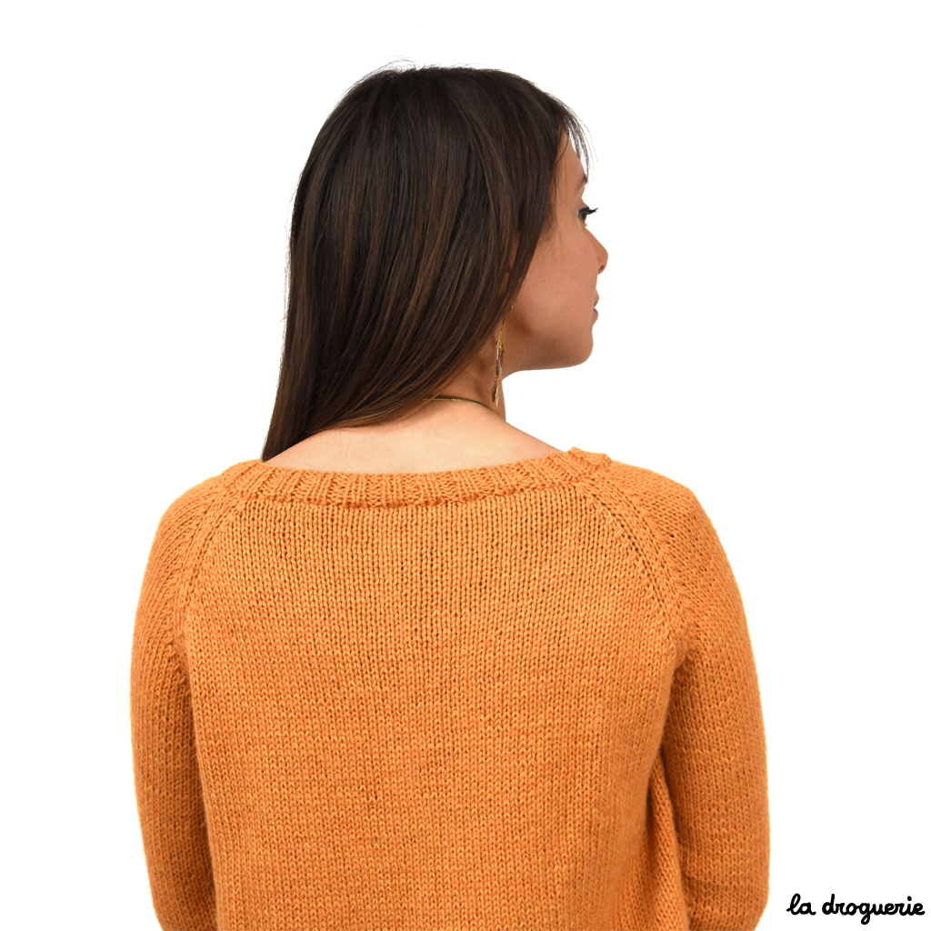Encolure arrondie et bordure en côtes 2/2 et petite fente sur les côtés.