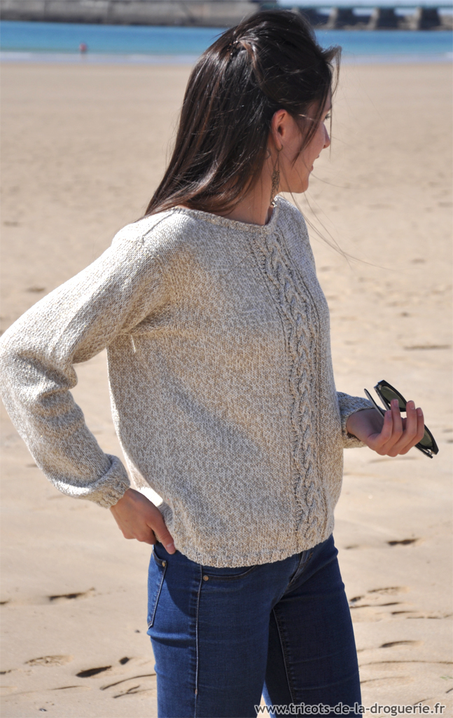 Il est tricoté en Métisse à Rio coloris « Ecru+naturel+or »