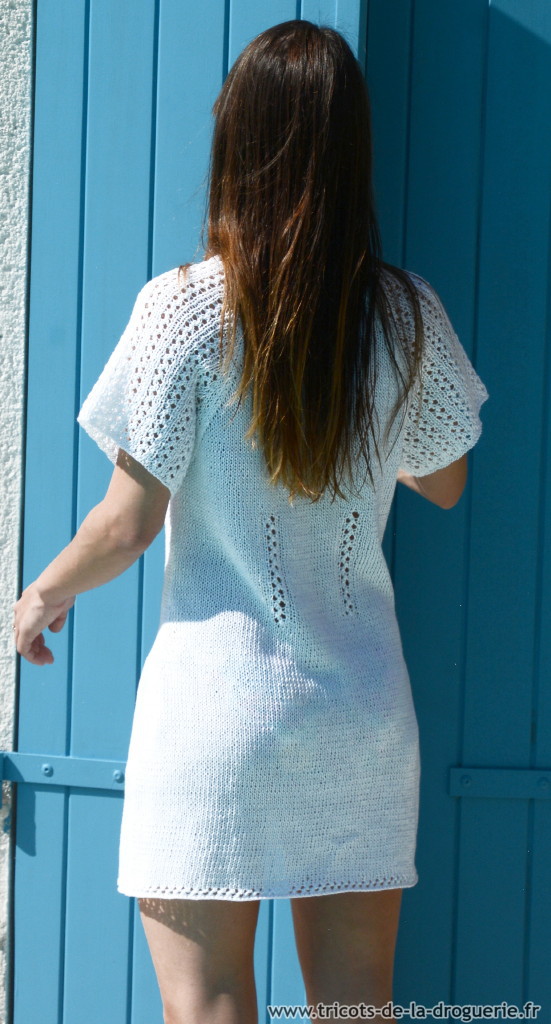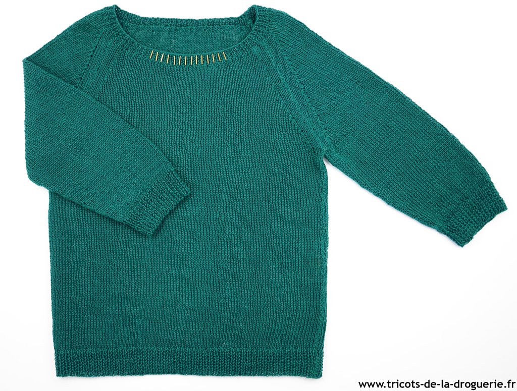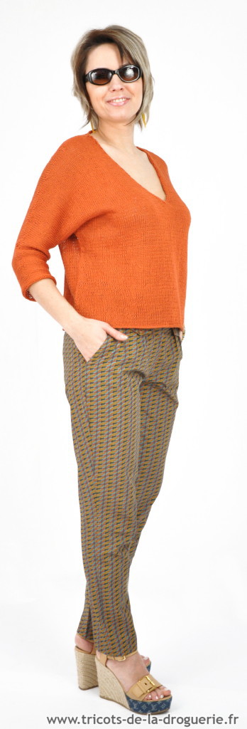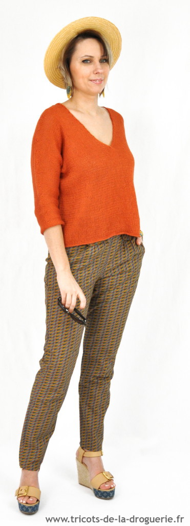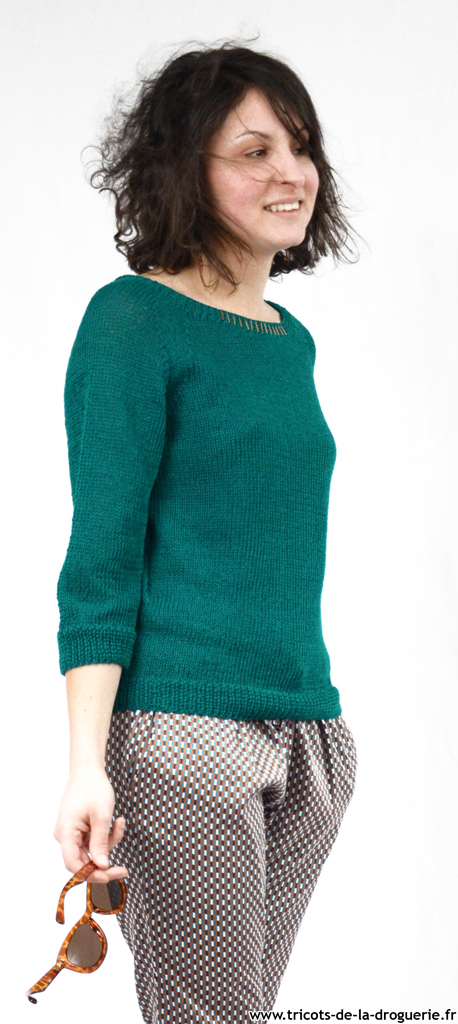 Le pull en Lin est taille unique, se tricote en un seul morceau, Aig 3 et 4.