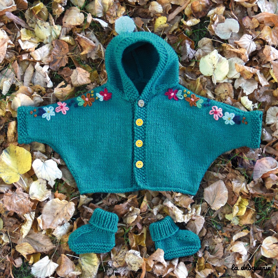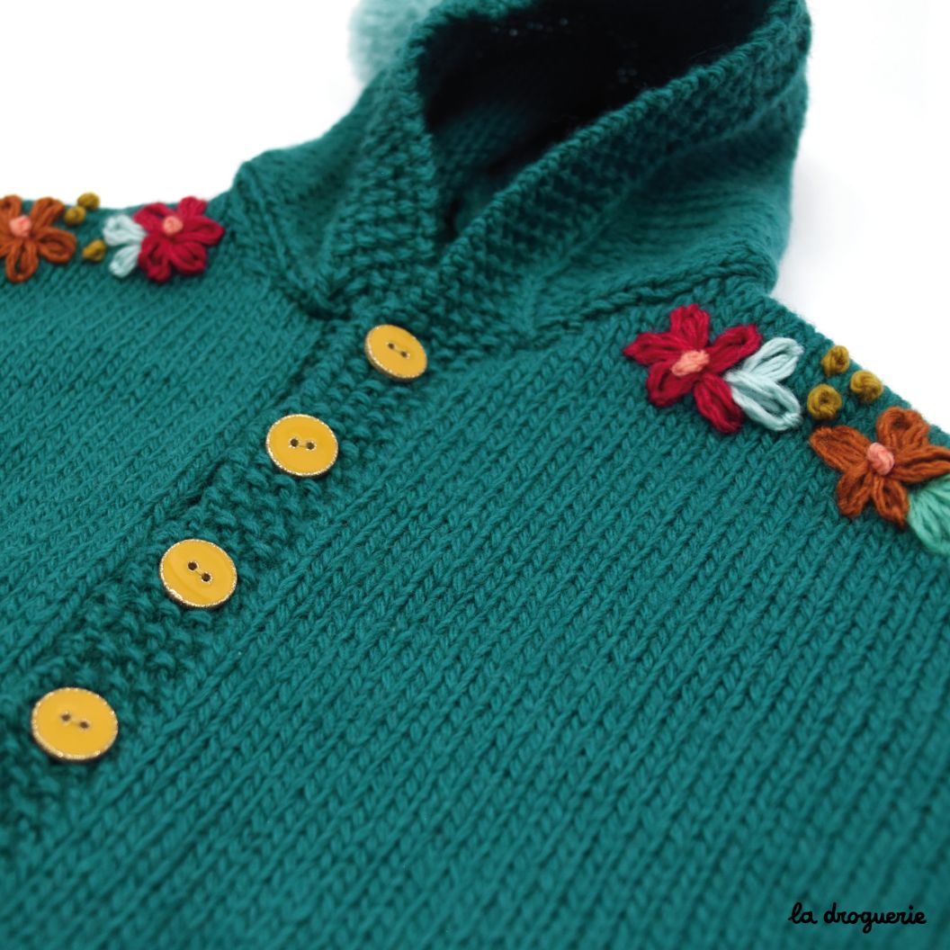 Sur le trajet, on finit de tricoter le cardigan de la p’tite dernière !