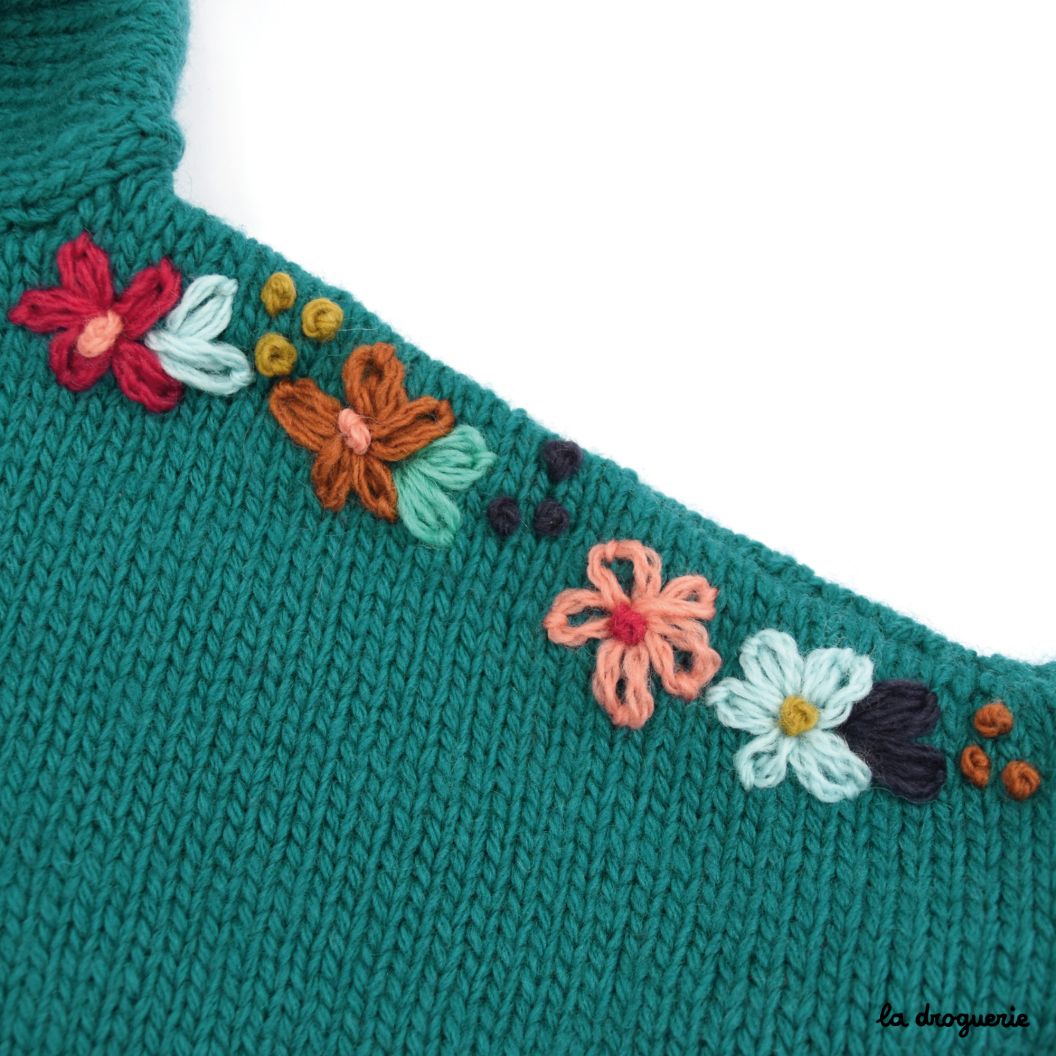 Il est tricoté en jersey et il est agrémenté de jolies broderies.