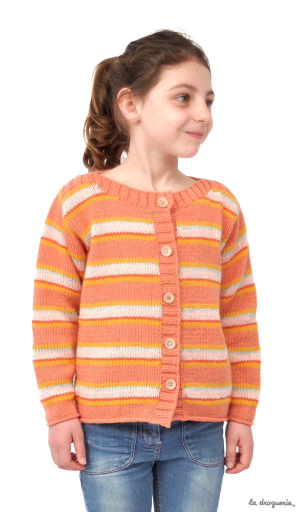 Cardigan d’enfant, coupe droite et emmanchures montées. Du 2 au 12 ans.