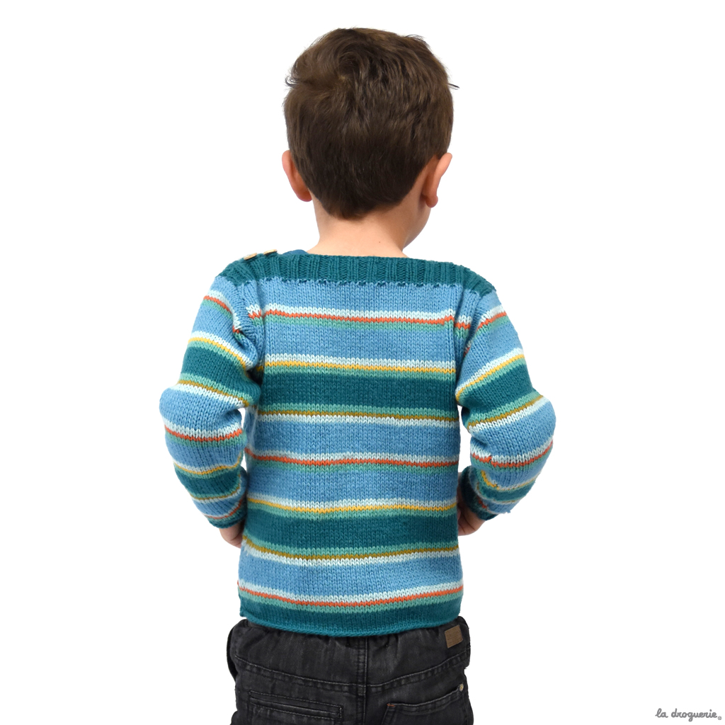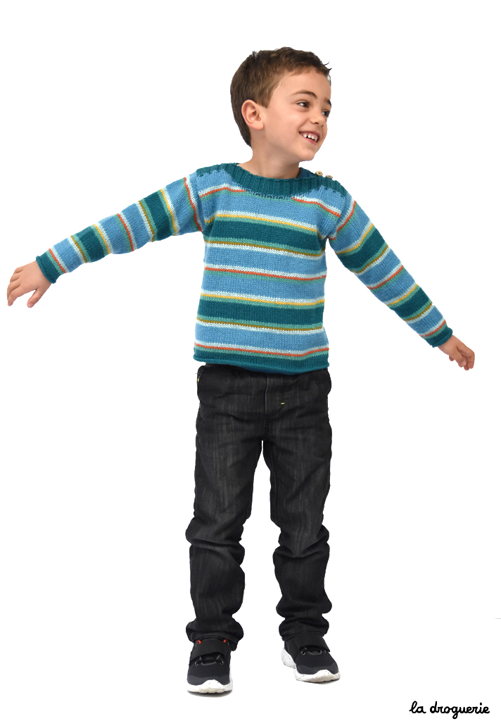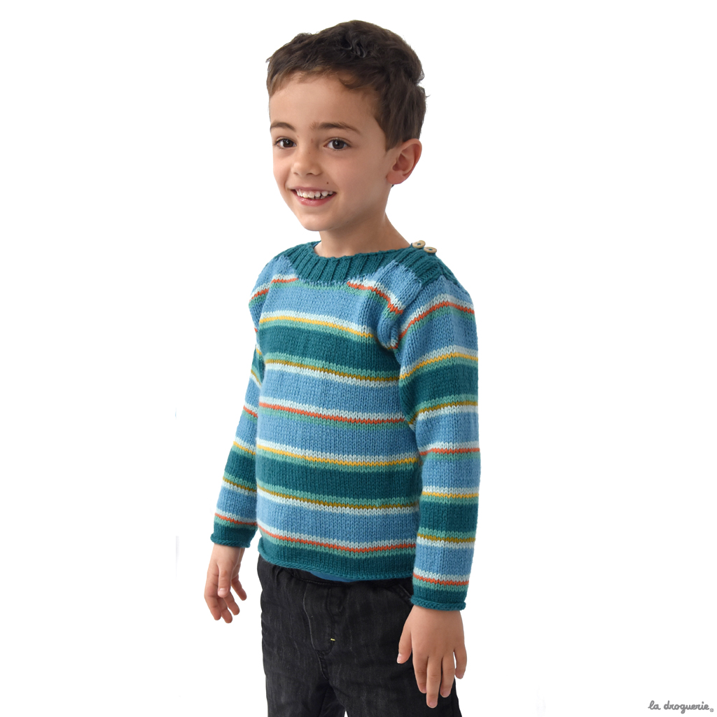 Du 2 au 12 ans. Pull d’enfant, coupe droite et emmanchures montées.