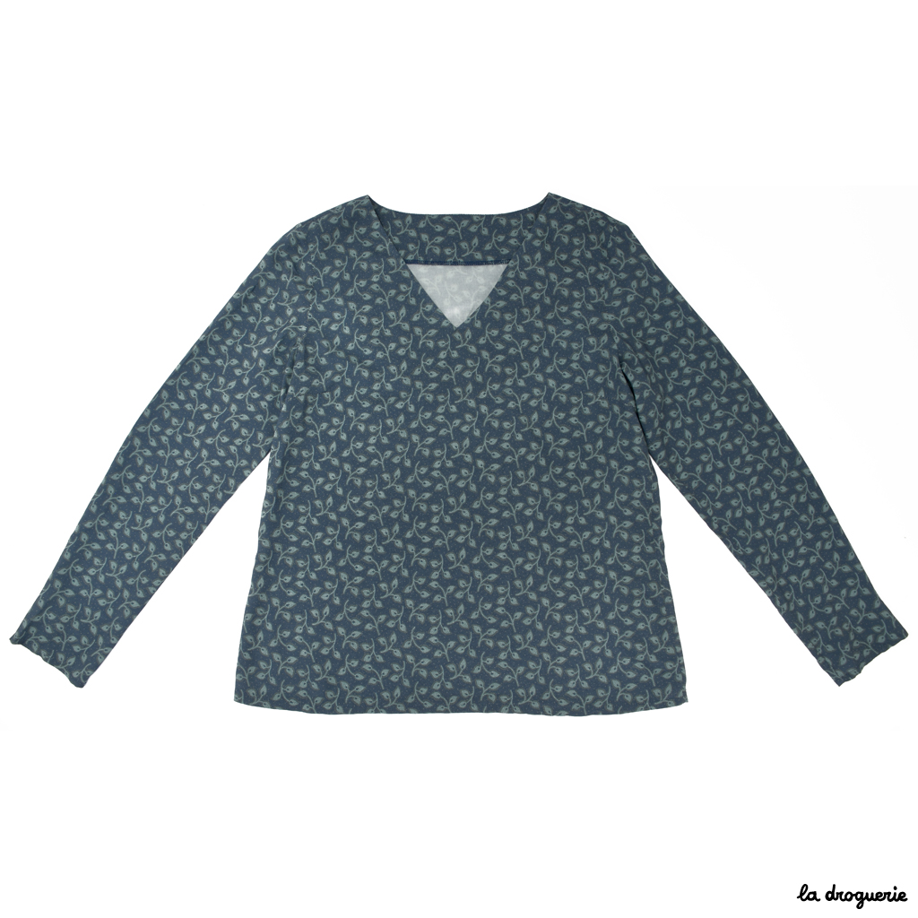Du 34 au 46 ans. Blouse fluide cousue dans le tissu « Girl of the North Country » en noir ou en « Mr Tambourine man » noir, faites votre choix !