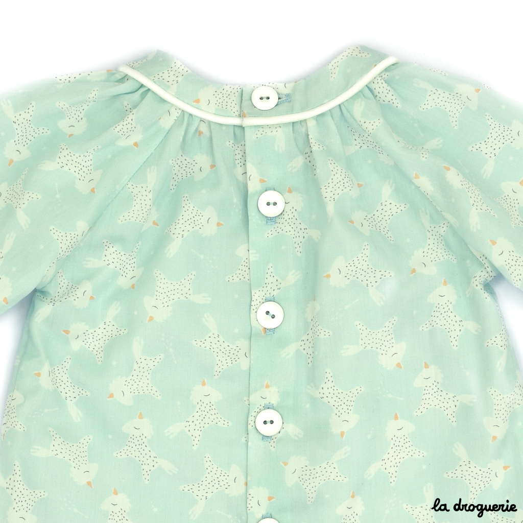 Boutonnage dans le dos par 4 petits boutons « Smarties ».