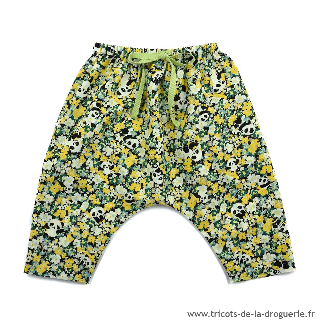 Arrondi à l’entrejambe et ourlet dans le bas du sarouel.