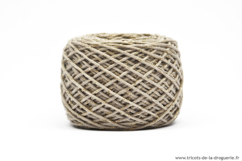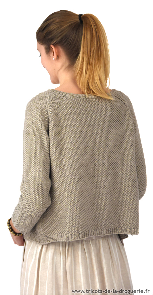 Elle se tricote en »Pépites » (91% Coton bio, 9% fil métallisé).