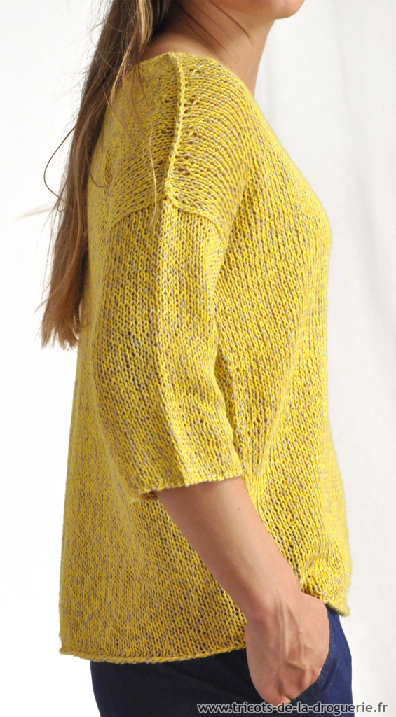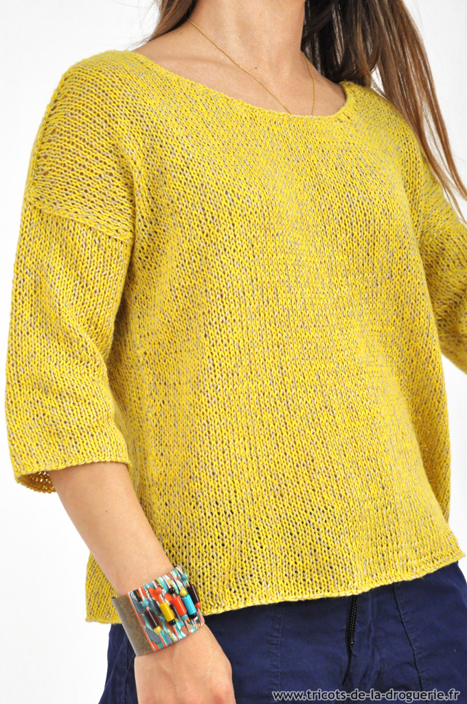 tricoté du haut vers le bas, sans couture sur les côtés.