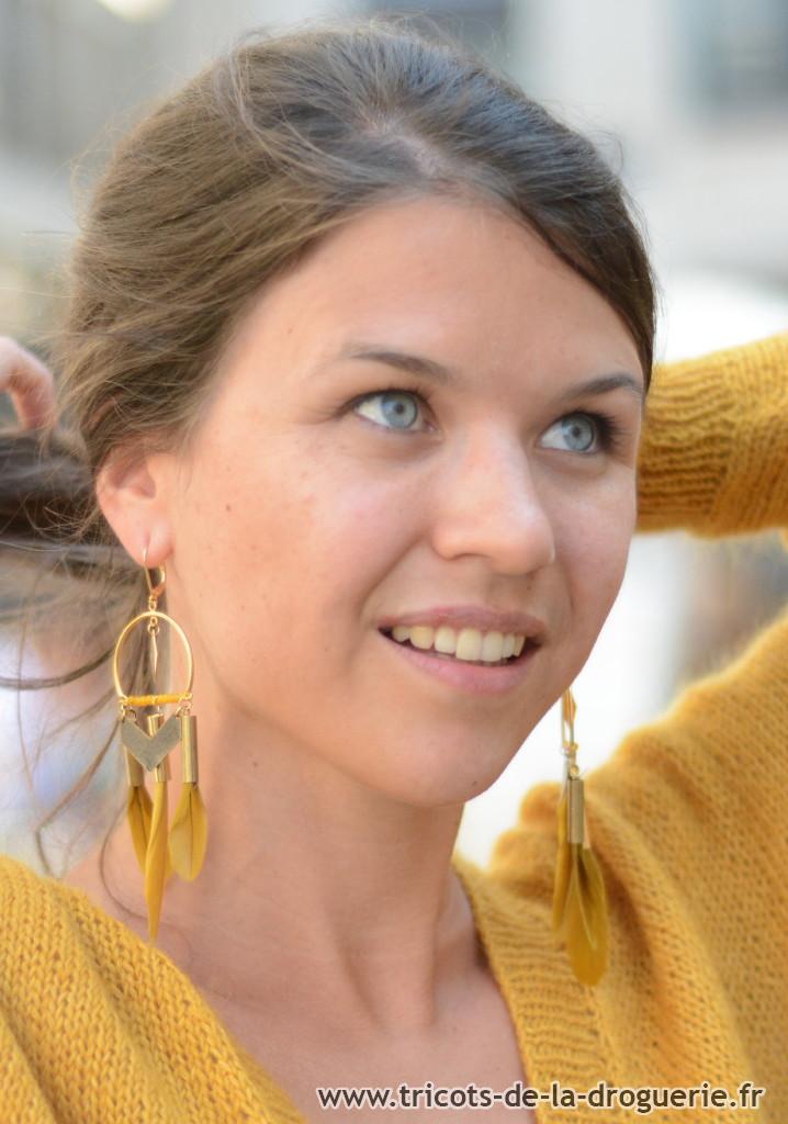 Tricoté en « Caresse » coloris « Ambre Doré ».