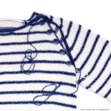 Tricotée en « Fleur de coton » coloris « Blanc » et « Marina ».