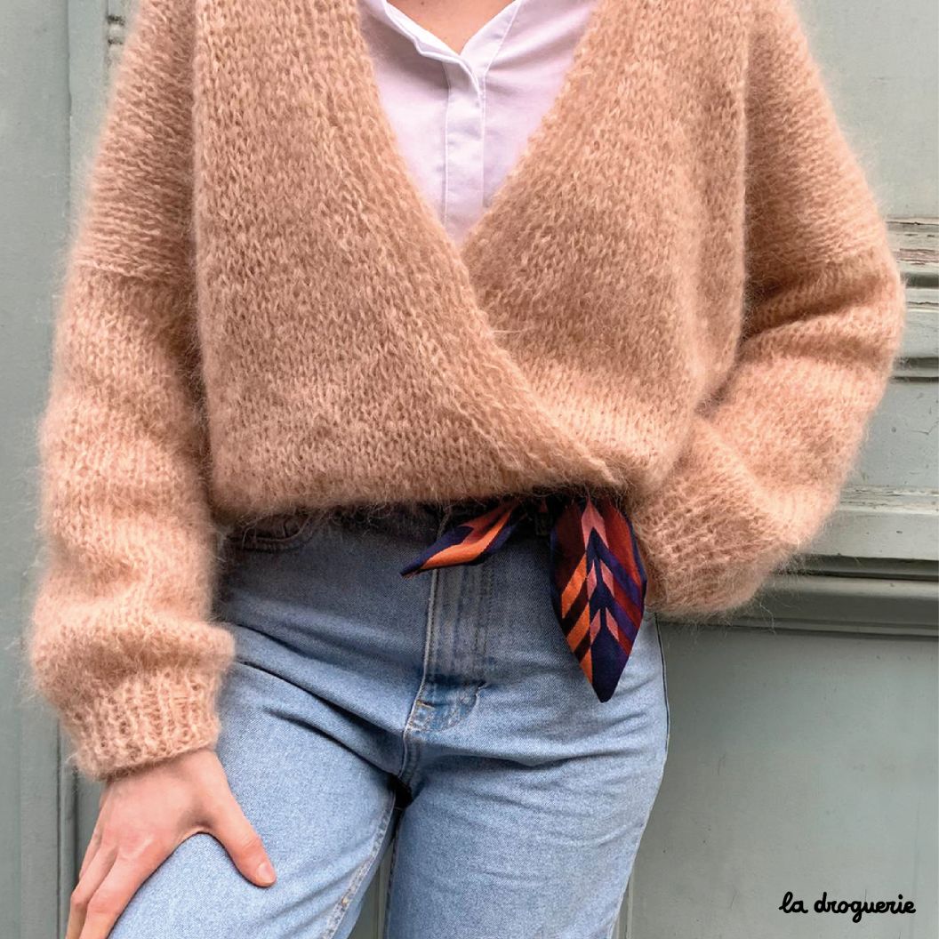 Un cardigan tout simple ? Eh non, il a de sublimes manches avec des torsades aux motifs ajourés ! On adore ce relief délicat en mélange Alpaga+Plumette, un vrai doudou !