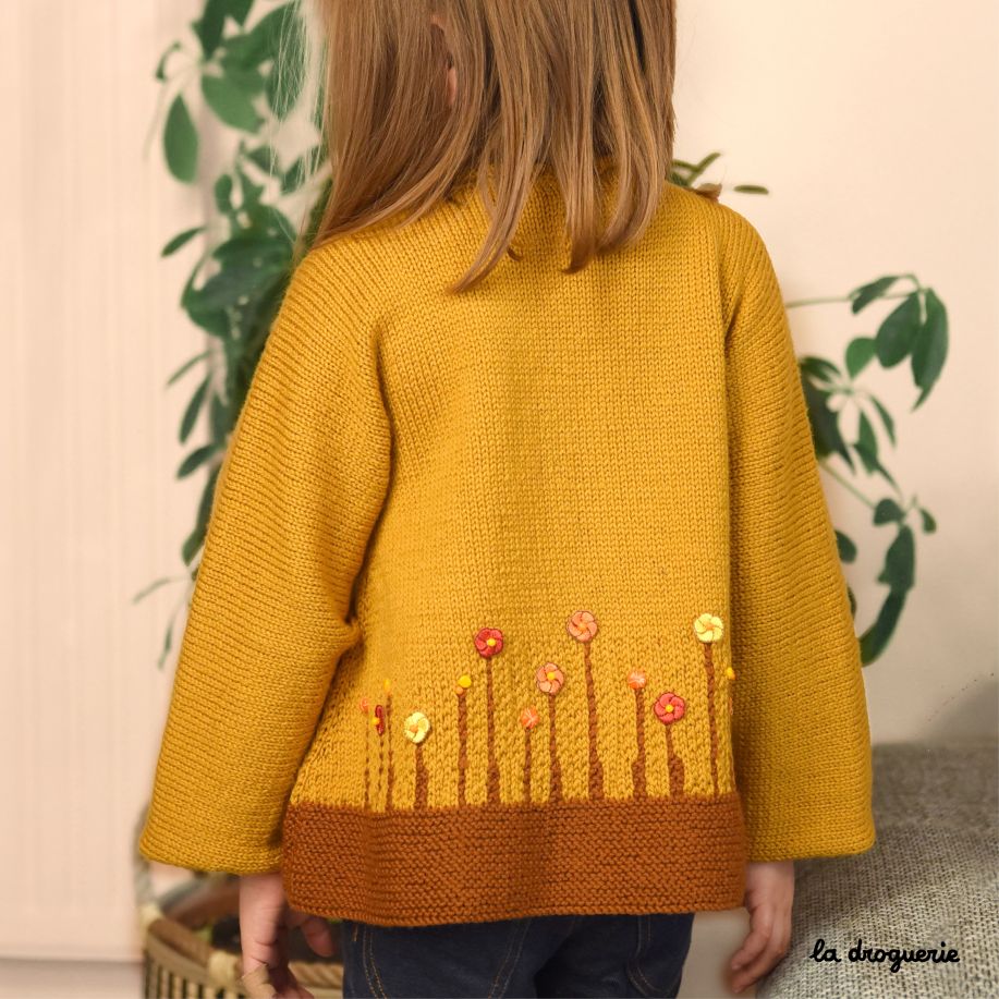 Du 2 au 6 ans il est tricoté en Surnaturelle avec des aiguilles 3.5 et 4.