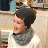 Tricoté en un seul morceau avec le mélange Alpaga/Plumette « Sable ». Aig. 5 et aig. circulaire 5.