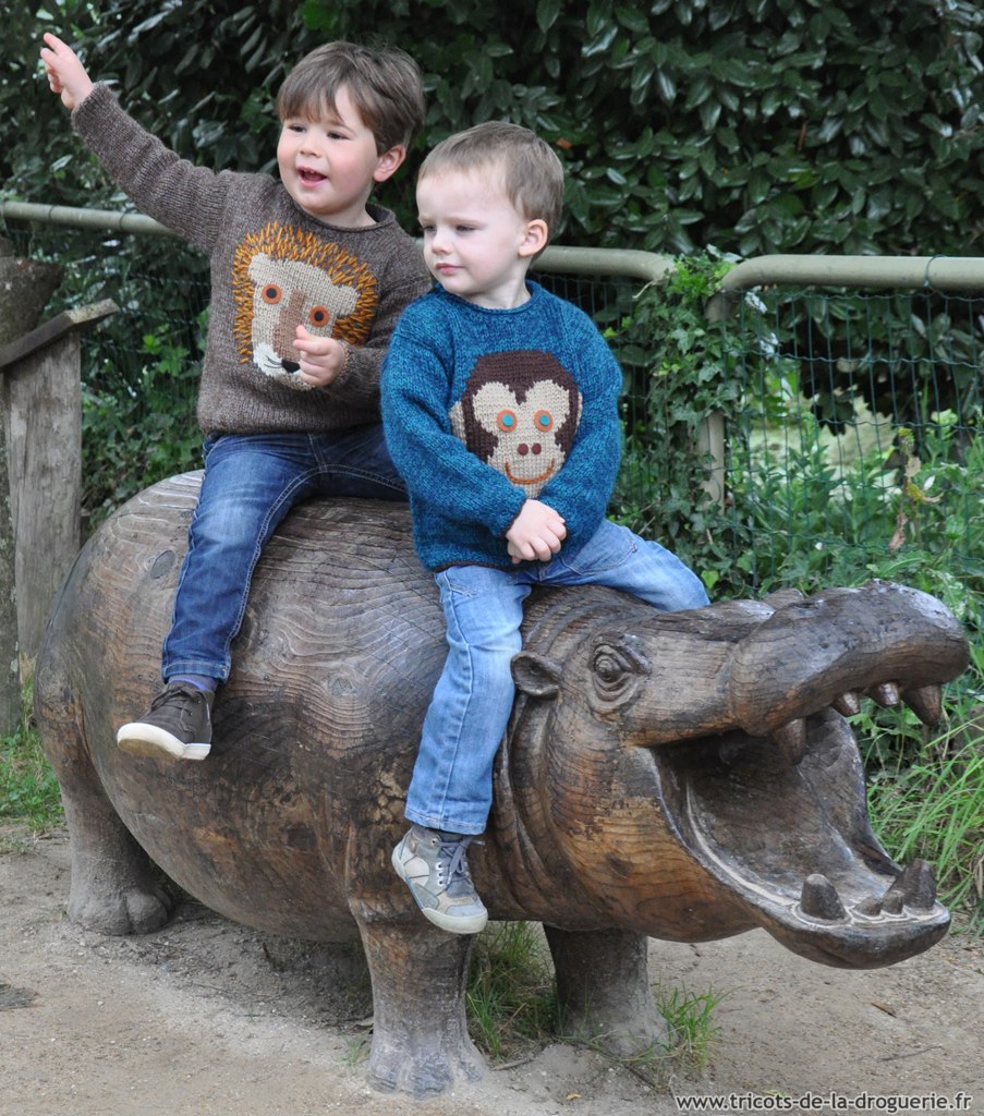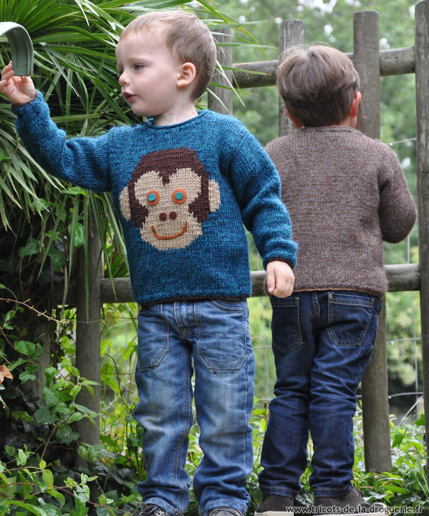 Le pull Lion et le pull Singe tricotés en mélange Alpaga+Surnaturelle