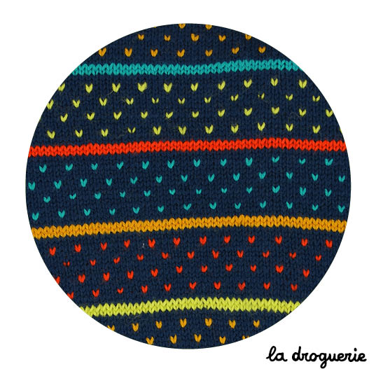 Il se tricote en rayures multico et jacquard à fils tissés.