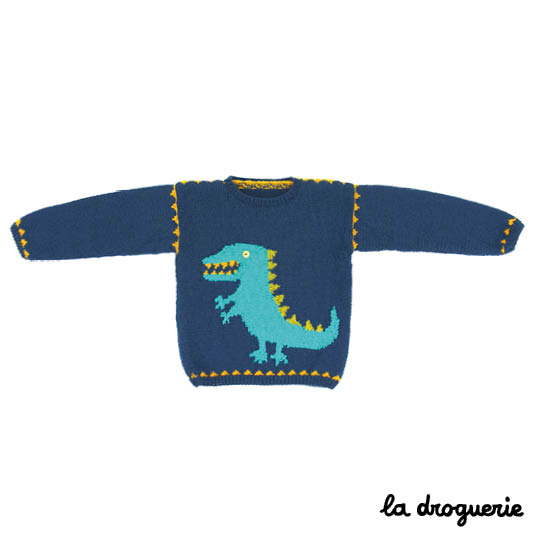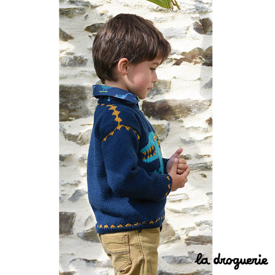 Beau pull, mais le tissu de la chemise a semble t-il aussi des dinos ! Il vient de la Droguerie ?
