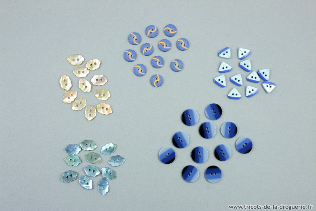 J’aime beaucoup les boutons ronds avec leur dégradé de bleus, mais pour le côté « marin » j’opte pour les petits bateaux