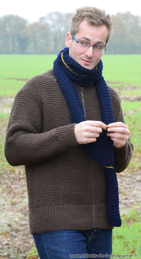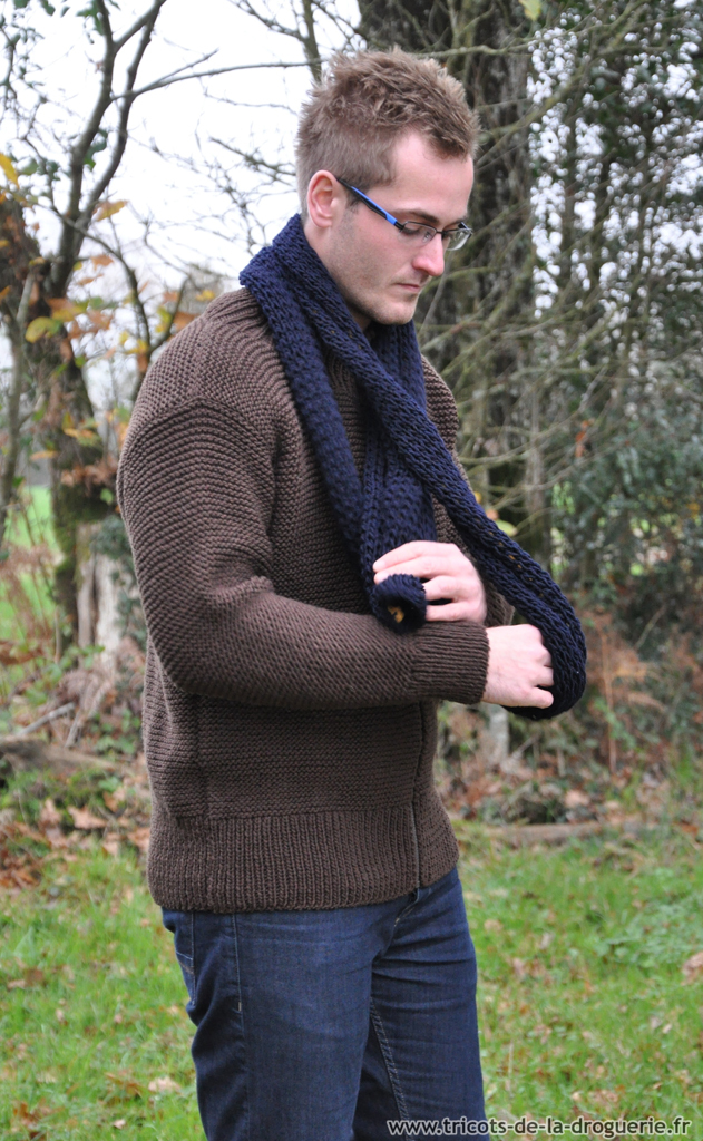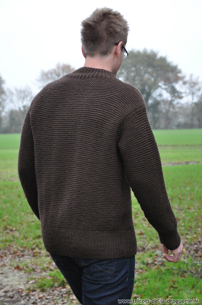 Le petit plus : les coudières sur les manches ! Elles sont tricotées en jersey pour marquer le contraste avec le point mousse.