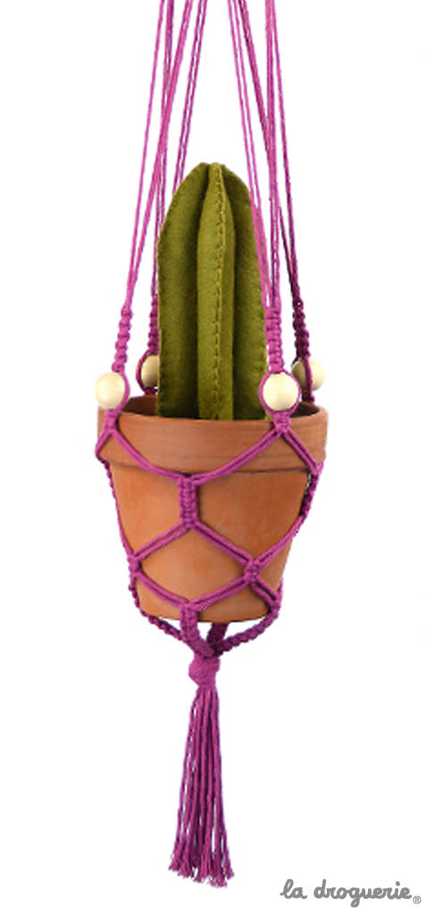 Suspension macramé en coton et cactus (en feutre ou en coton).