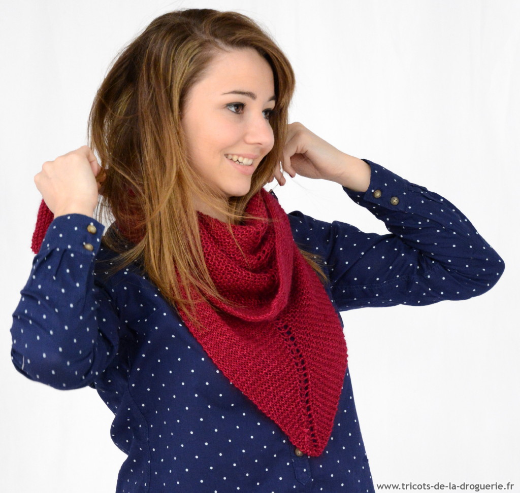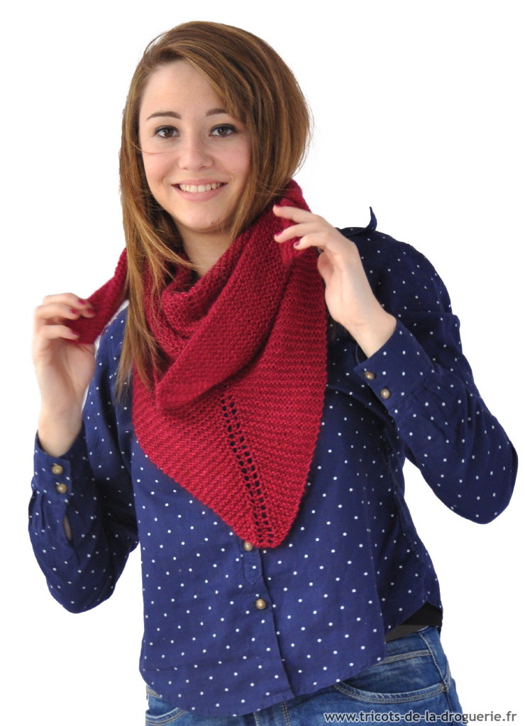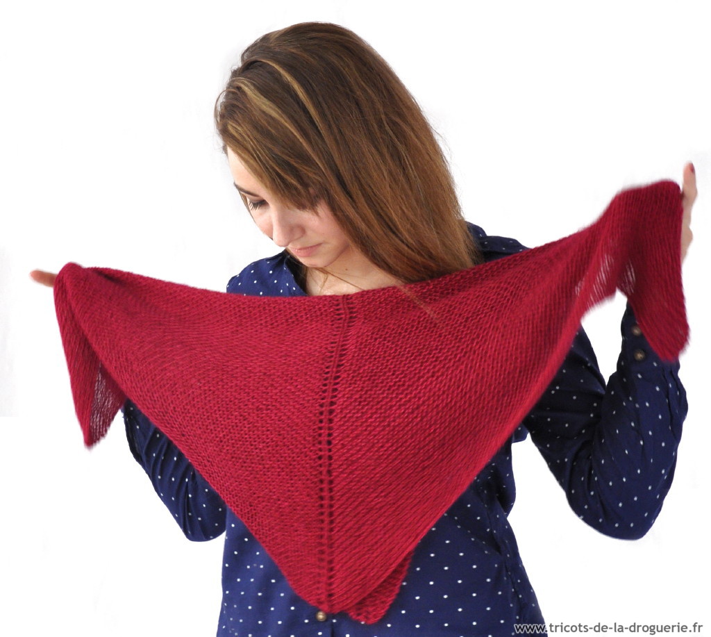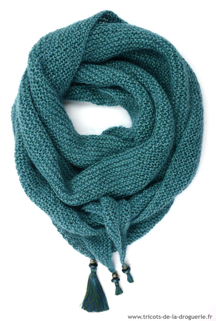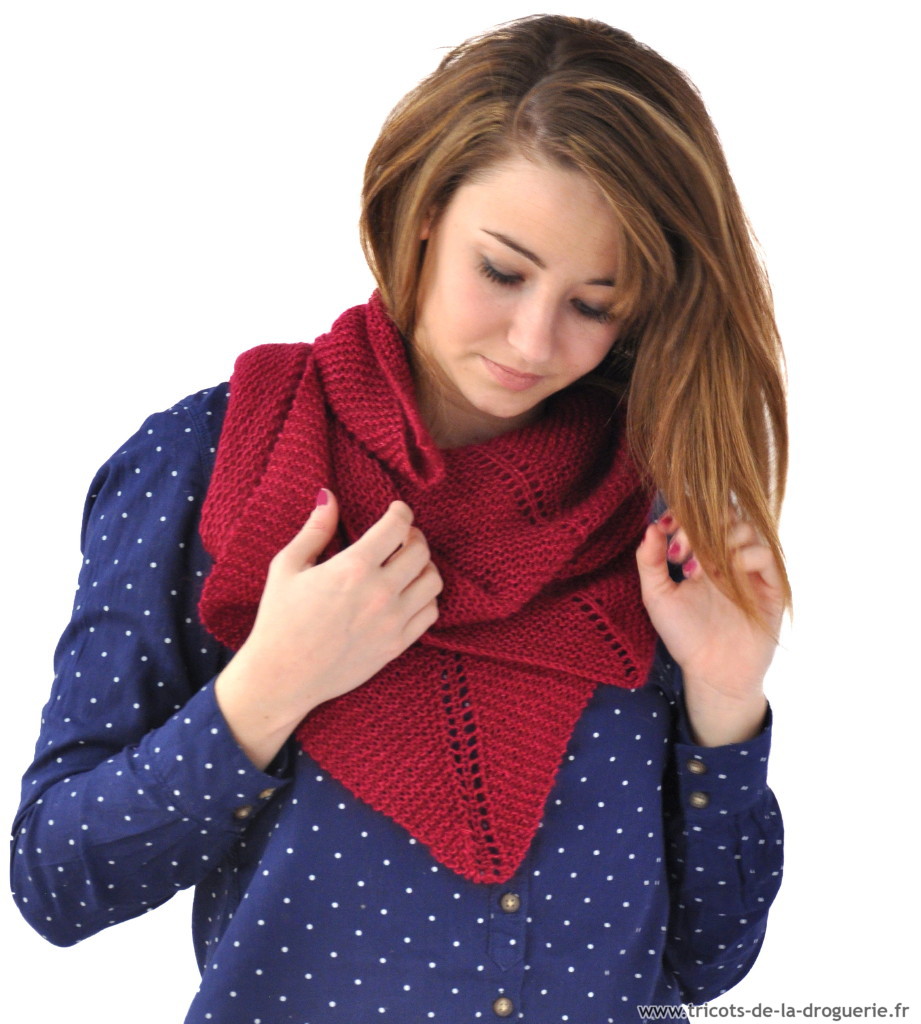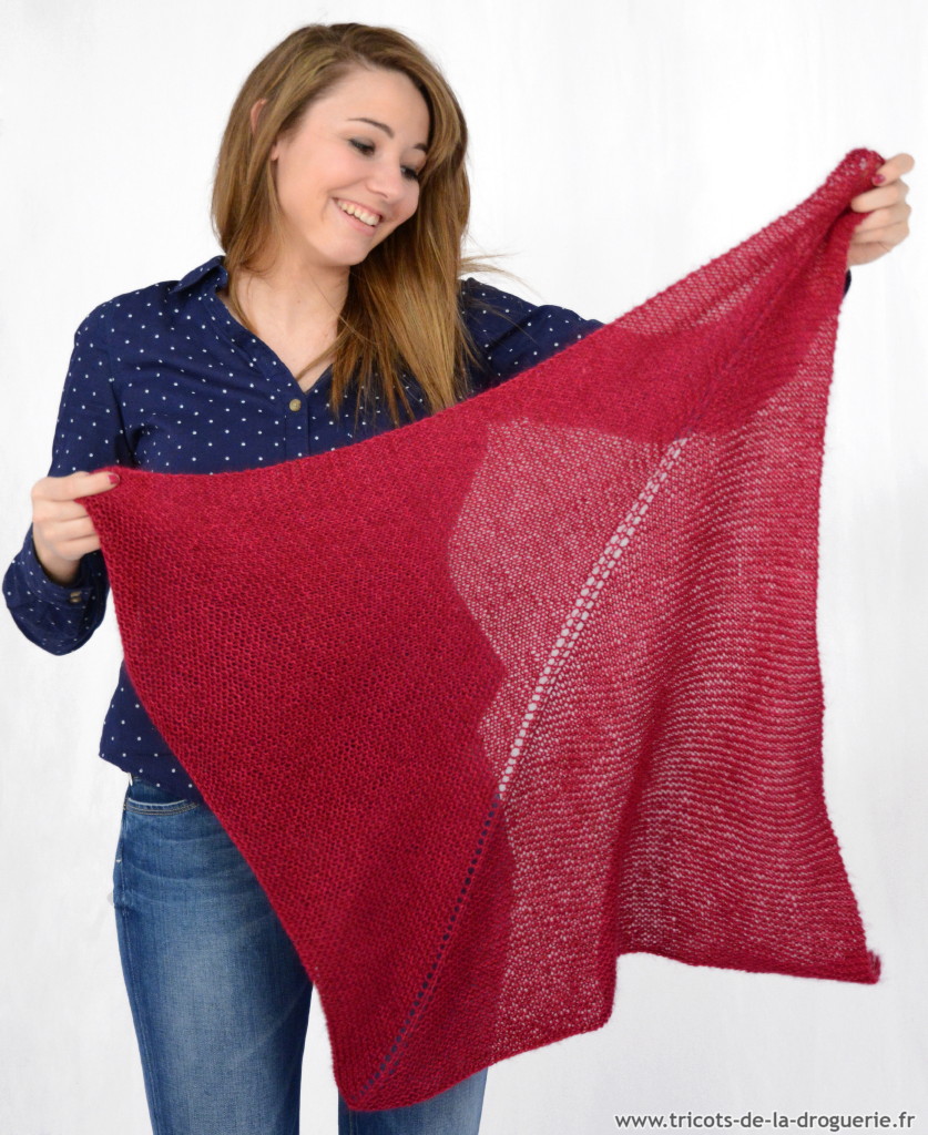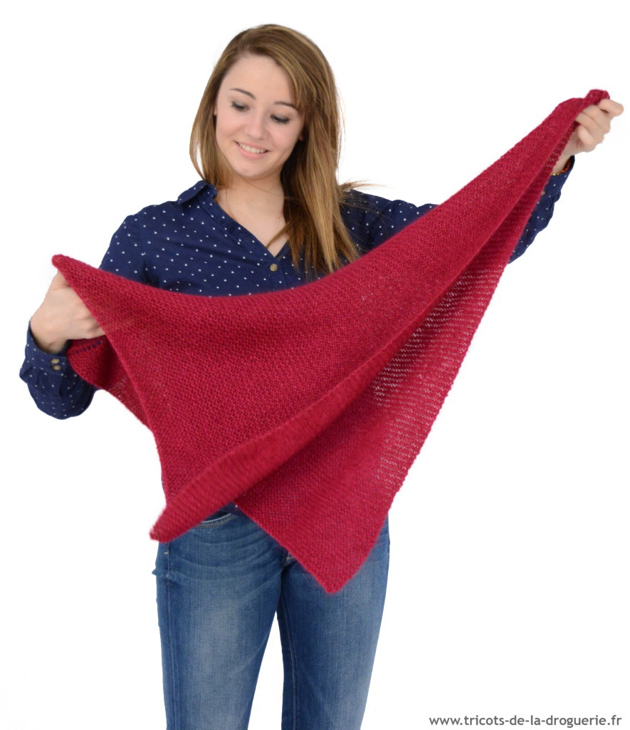 le carré Rue du Bac – 110 x 80 cm env. – Caresse – Aig 5. Vous pouvez commander ce châle sur www.e-droguerie.com dans la rubrique IT TRICOT.