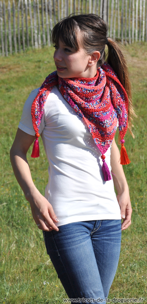 le châle rayé « Gipsy » tricoté en « Fleur de Coton » (100% coton)