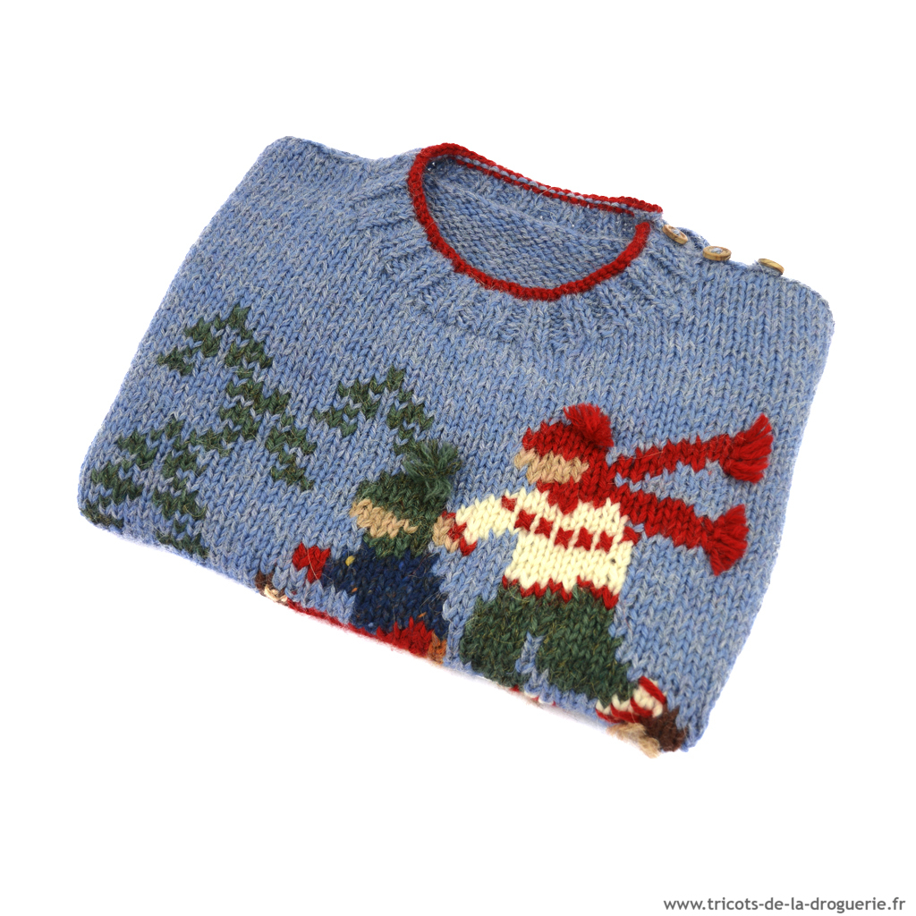 On cherche le père noël avec le pull « Tombe la neige ». Il existe en 2 – 4 – 6 – 8 – 10 – 12 ans ; Aig. 4 – 5