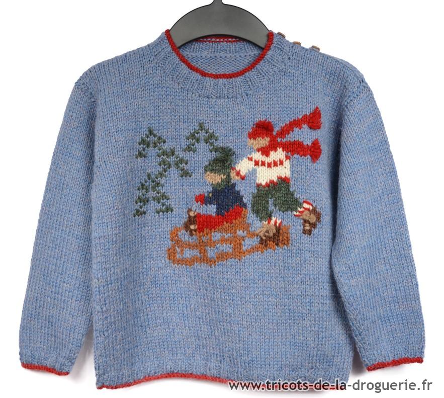 Vite, partons à la recherche du Père Noëlavecle pull enfant Luge Tailles : 2 – 4 – 6 – 8 – 10 – 12 ans et Adulte (36 à 46) ! Aig. 4.5 – 5