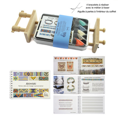 Plein d’idées et d’inspirations, le carnet « Akimiski » vous apprendra les différentes techniques de tissages et vous pourrez créer vos propres motifs en utilisant les grilles vierges à la fin du carnet.