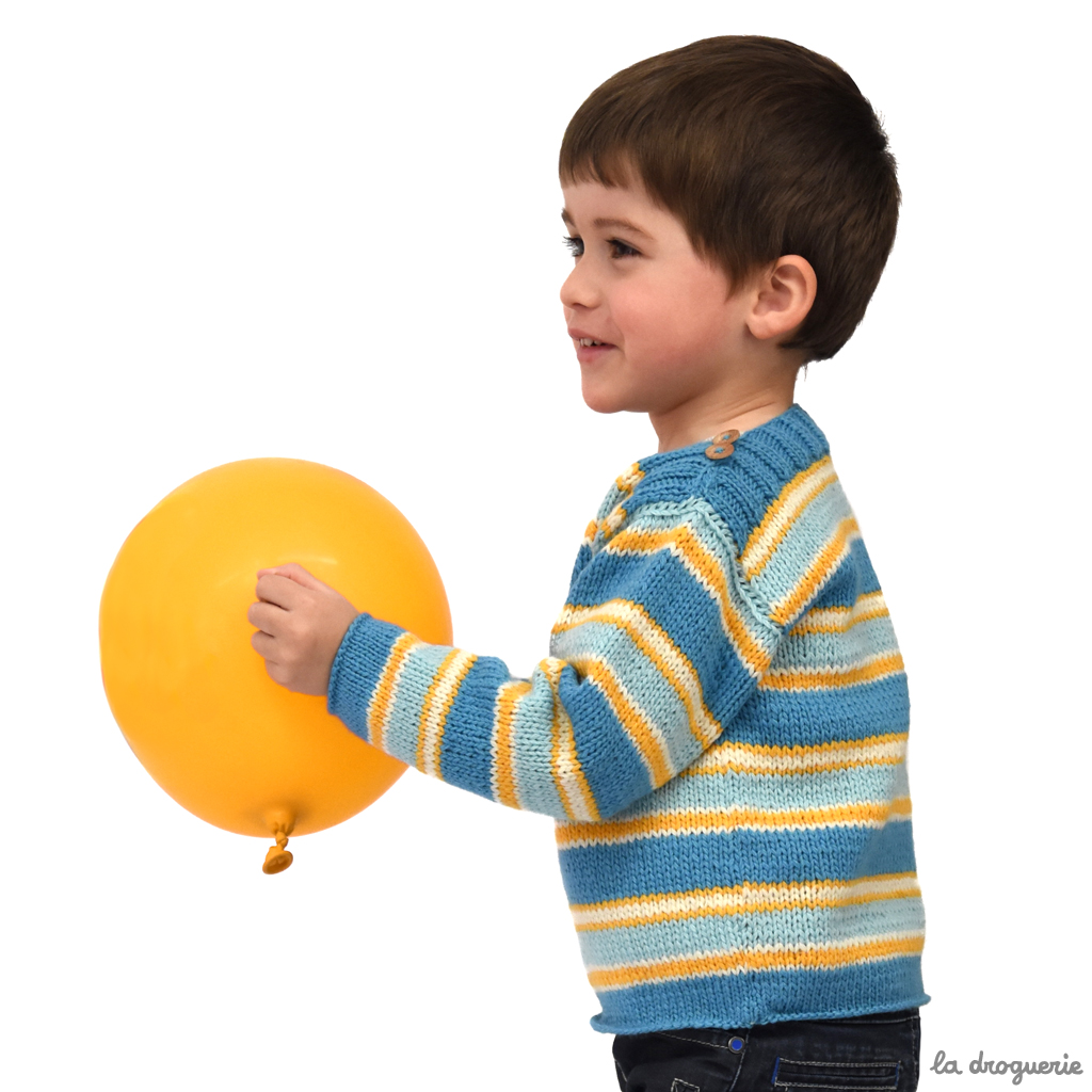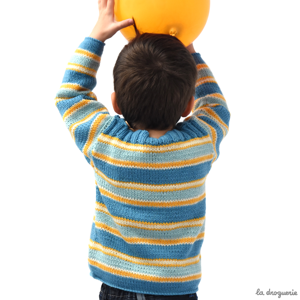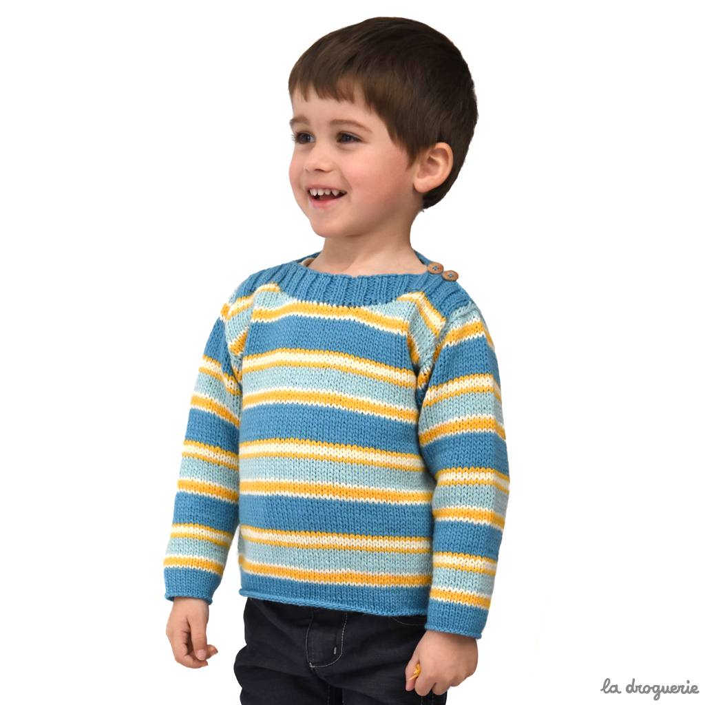 Du 2 au 12 ans. Pull d’enfant, coupe droite et emmanchures montées.